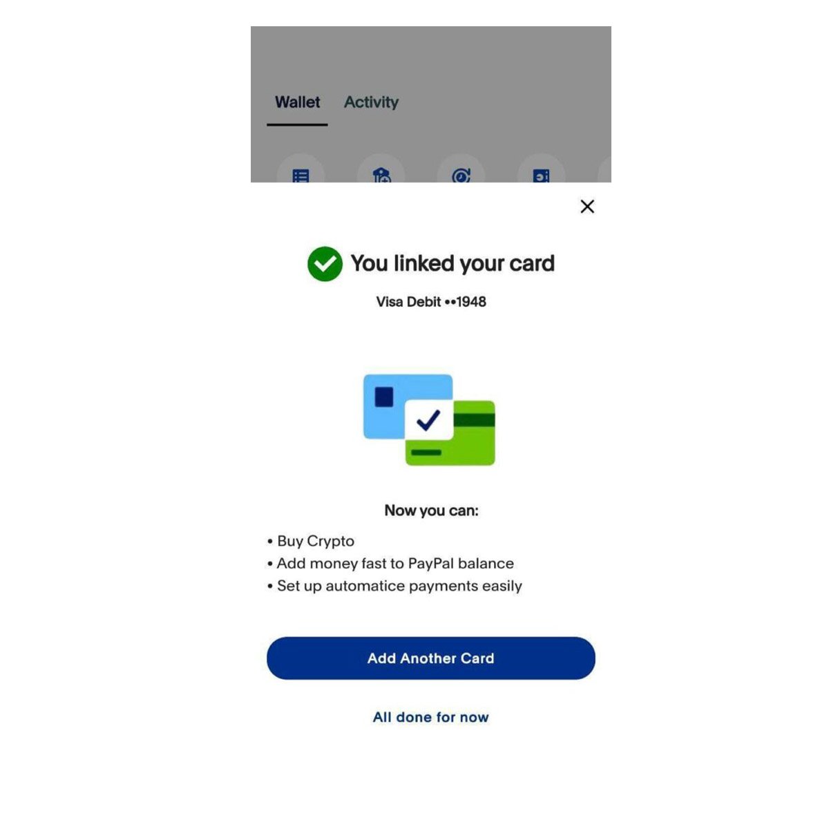 Step 2: 📝 Enter the card details and confirm the link is successful.